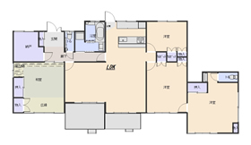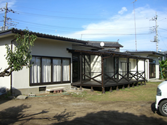 築40年の建物を中古物件で購入されリフォームがしたいとご相談がありました。 部屋がそれぞれわかれている間取りでしたが、広く明るいリビングに大きなウッドデッキをご希望されておりました。 パネル工法の建物で間取りを変えるのが難しい物件でしたが、当社で耐震診断を行い屋根裏、壁に補強を入れて間取りを変えることが出来ました。 明るく開放的なリビングに約12帖の広いウッドデッキを実現しました。
