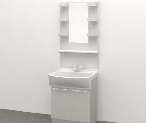 両開き扉タイプ(W750mm) 洗面ボウル(陶器製) 1面鏡(W750タイプ) 12W電球蛍光灯(2個) コンセント2個(右・左)付き ドライヤーフック付き くもり止めヒーターなし 2バルブ水栓 ダブルヘアキャッチャー