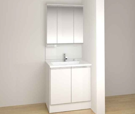 本体キャビネット両開きタイプ 3面鏡LED照明ミドルパネル マルチシングルレバーシャワー(カチッと水栓) カウンター(ウェットエリア) スッキリ家電収納