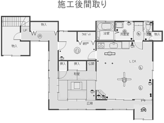 和室を納戸に変更する等して、収納力を格段にアップさせました。